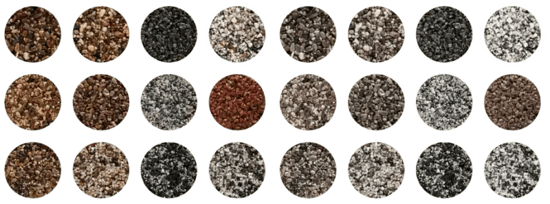 Pick from a diverse palette of colours and natural stone mixes – from warm earthy shades to crisp greys and rich golds. Looking for something different? We also offer bespoke colour blends made to your specifications.